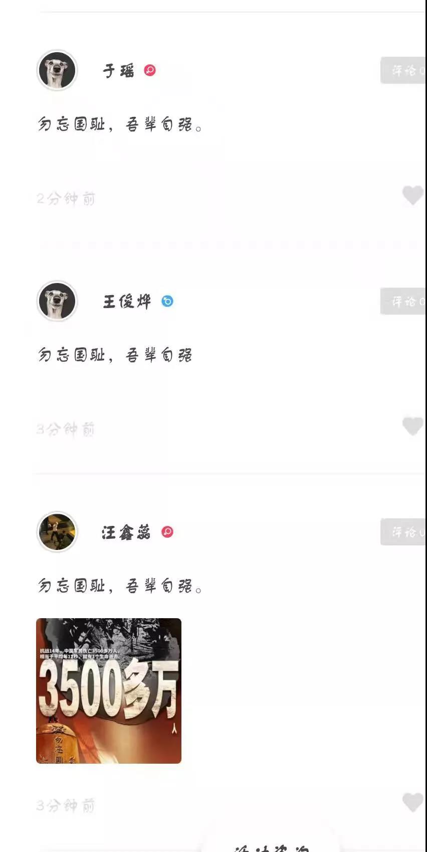 国行公祭,祀我国殇;缅怀过往,志向将来。追先辈英灵以铭记国耻,感今古之变而奋勇前行。