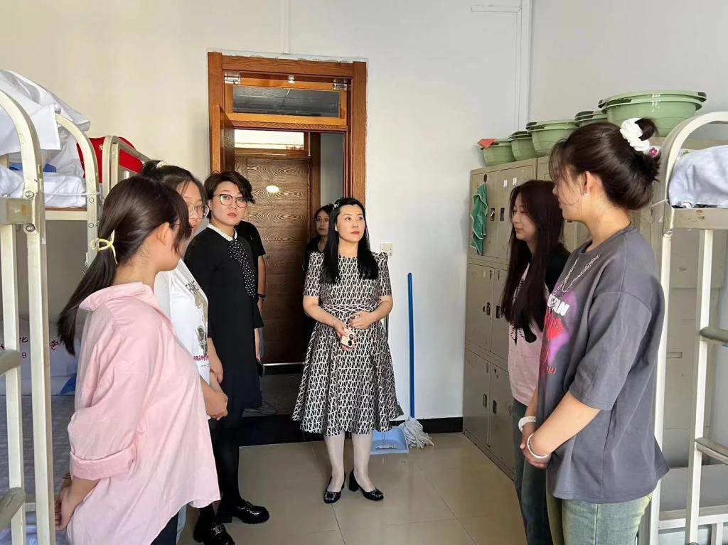 初秋进行时,遇见“新”上人。为深入了解2023级新生思想动态、报到情况及入学感受,及时为学生答疑解惑,让新生们第一时间感受到学校的关怀与温暖,帮助新生尽快地适应大学生活。2023年9月3日上午,ac米兰官网中文网站党总支副书记赵林楠,副院长汪淑双,2022级辅导员鞠亚林,2021级辅导员韩金凤,一起走进新生宿舍,为萌新们送去关怀和慰问。