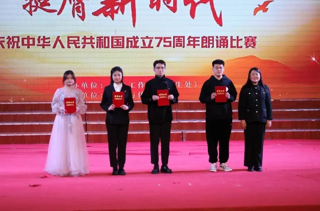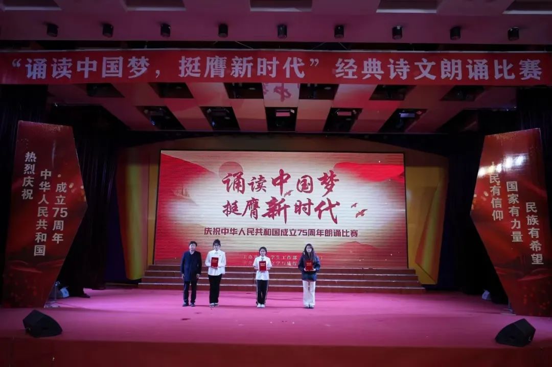 为庆祝中华人民共和国成立75周年,进一步丰富校园文化生活,培育和践行社会主义核心价值观,激发广大青年学子的爱国热情,展现新时代米兰官网青年学子的良好精神风貌,10月23日晚,“朗诵中国梦,挺膺新时代”诵读大赛在大学生活动中心举行。本次比赛由学生工作部主办,ac米兰官网中文网站承办。学生工作部部长关江宏、副部长孙俊超、ac米兰官网中文网站党总支副书记张鹏及各学院辅导员老师出席观看比赛。党委宣传统战部副部长孙丽颖、ac米兰官网中文网站副院长汪淑双、教授张左娟、教授郭玉斌、学生工作部思想政治教育科陶立志老师担任评委。
