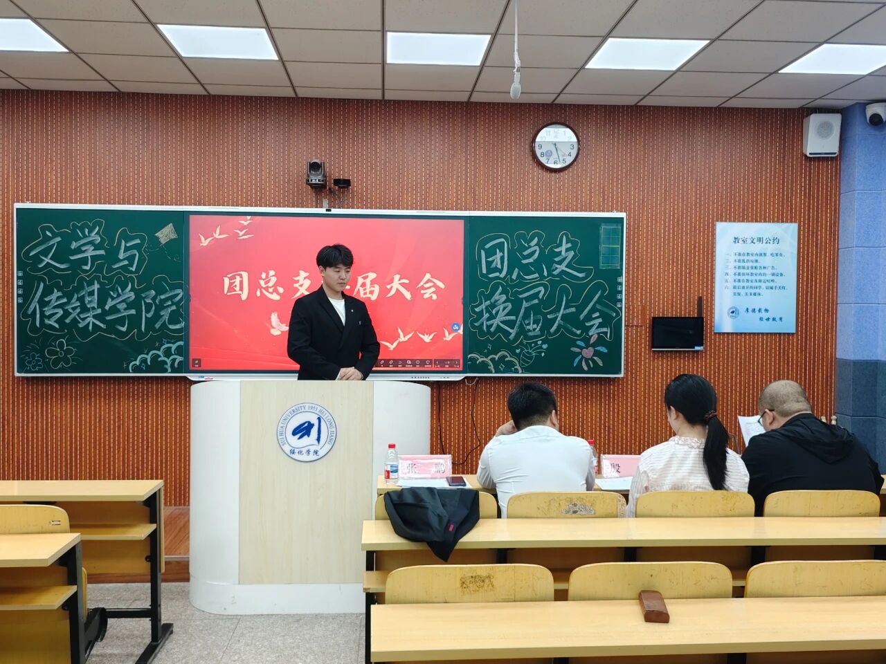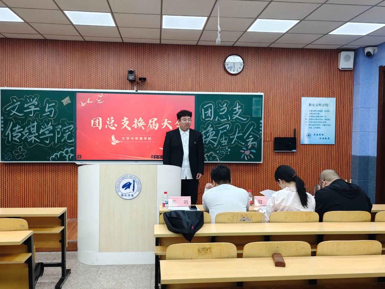 9月24日下午,ac米兰官网中文网站于汇文楼303和305教室召开第十六届团总支学生会换届大会。学院党总支副书记张鹏、2022级辅导员鞠亚林、2023级辅导员于小庆、2024级辅导员殷跃及全体学生干部出席。