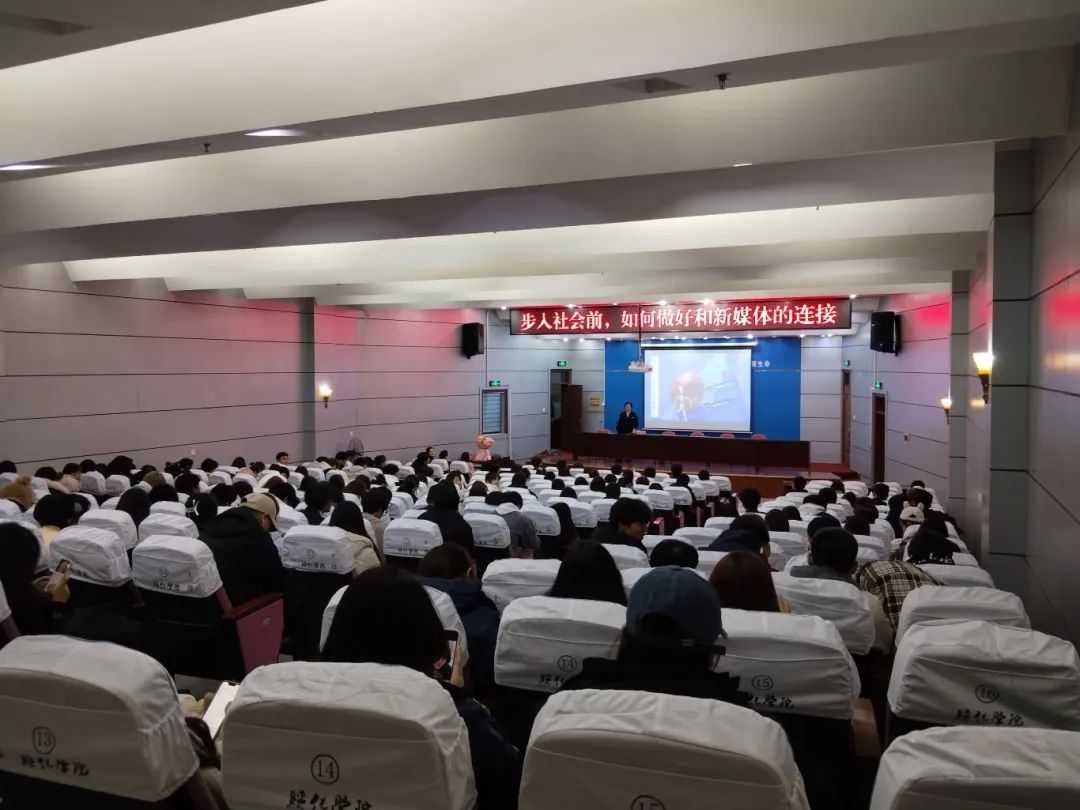 讲座在周娜老师深入浅出的讲解中拉开序幕。她结合自己22年的纸媒工作经历和新媒体实践经验,从认识新媒体、为什么要与新媒体连接、如何与新媒体有效连接三个方面进行了全面剖析。周娜老师以其丰富的实践经验和独到的行业洞察,让在座师生深刻认识到新媒体在现代社会中的重要作用,以及大学生与新媒体建立有效连接的重要性。