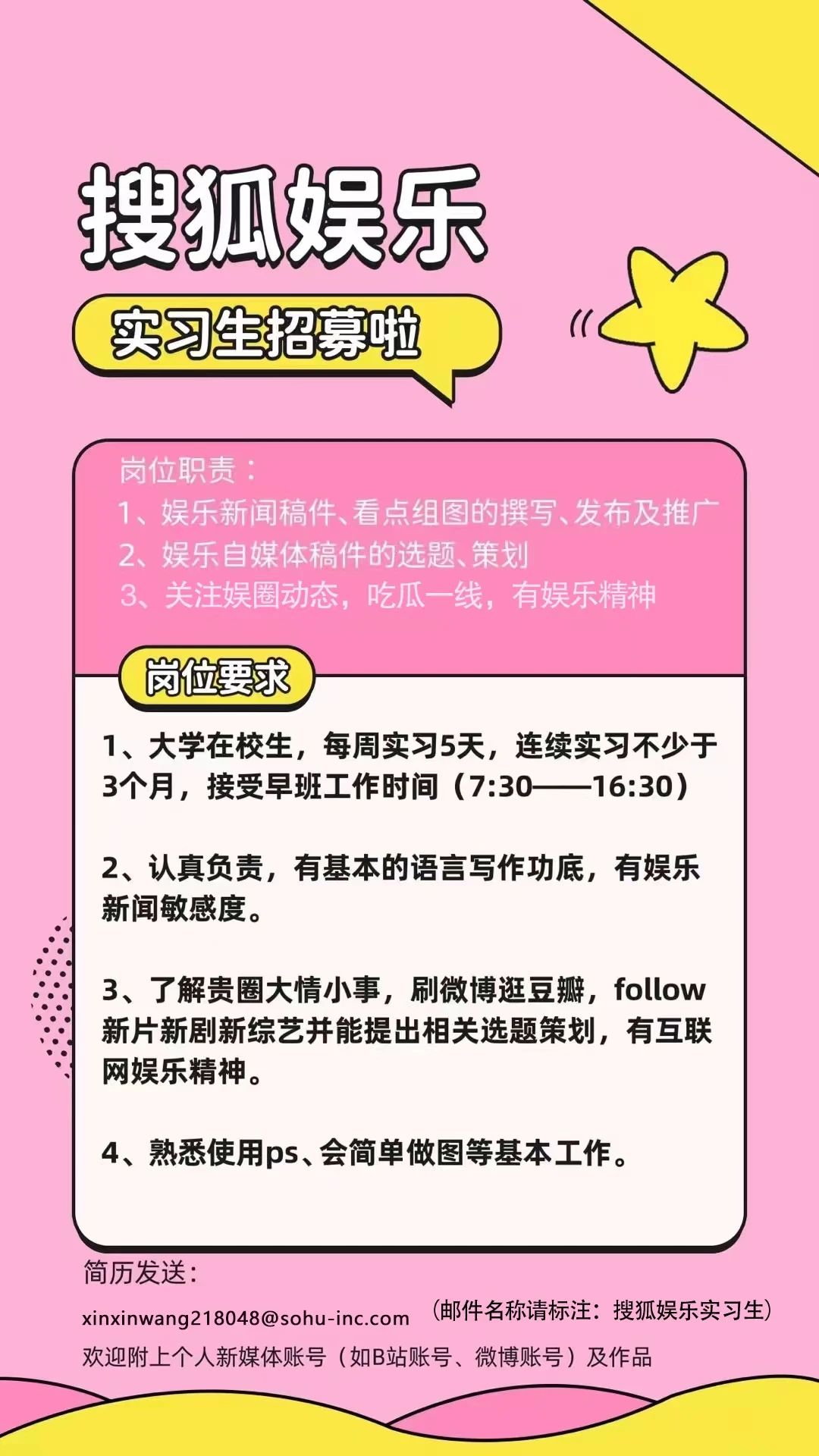 就业指导丨搜狐娱乐招聘实习生