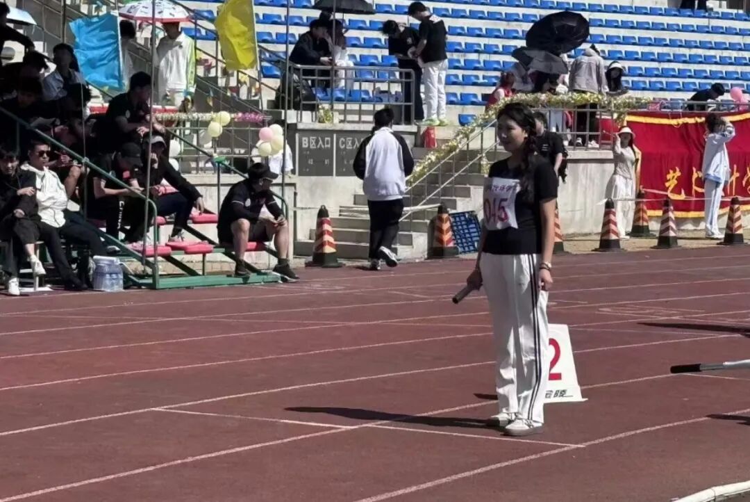 师生接力比赛跑道之上,平日严谨的老师们此刻化身赛道飞人,紧握接力棒,蓄势待发,每一次传递都凝聚着信任与力量。沉稳与矫健在疾驰中交融,速度与协作在呐喊里激荡,他们用奔跑诠释着团队精神,以全力冲刺展现讲台之外的澎湃风采!