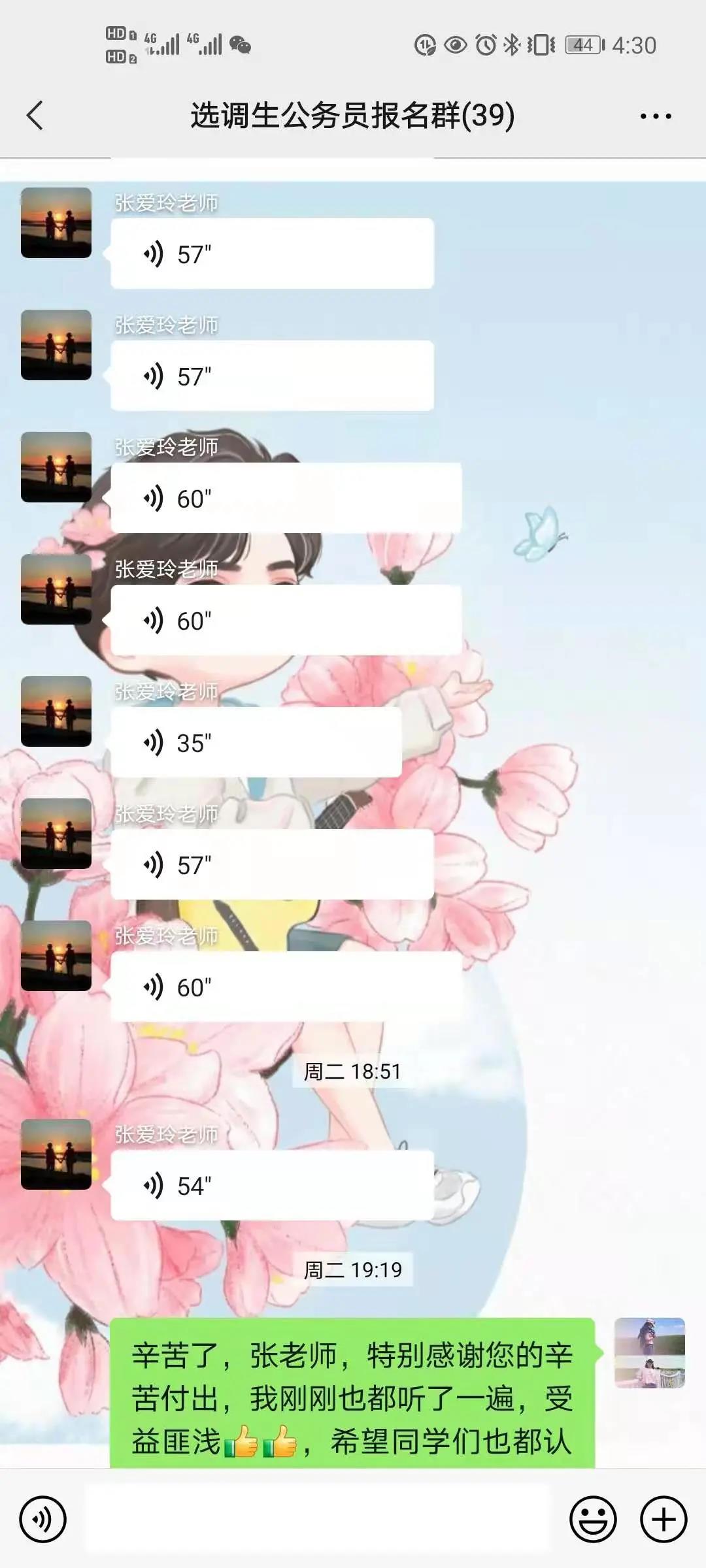 此次特殊的微信语音讲座为报名选调生考试的同学明确了备考方向,提高了应试能力,增强了考试信心。讲座后,同学们一致表示干货满满、受益匪浅。