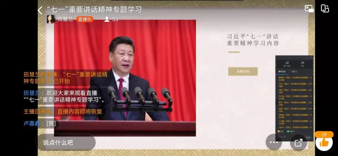 本次线上专题学习会中,同学们了解到习近平总书记“七一”重要讲话是一篇光辉的马克思主义纲领性文献,蕴含着深厚的政治分量、理论含量、精神能量、实践力量。讲话也提出了一系列新思想新观点新论断,把我们党对共产党执政规律、社会主义建设规律、人类社会发展规律的认识提升到了新高度。