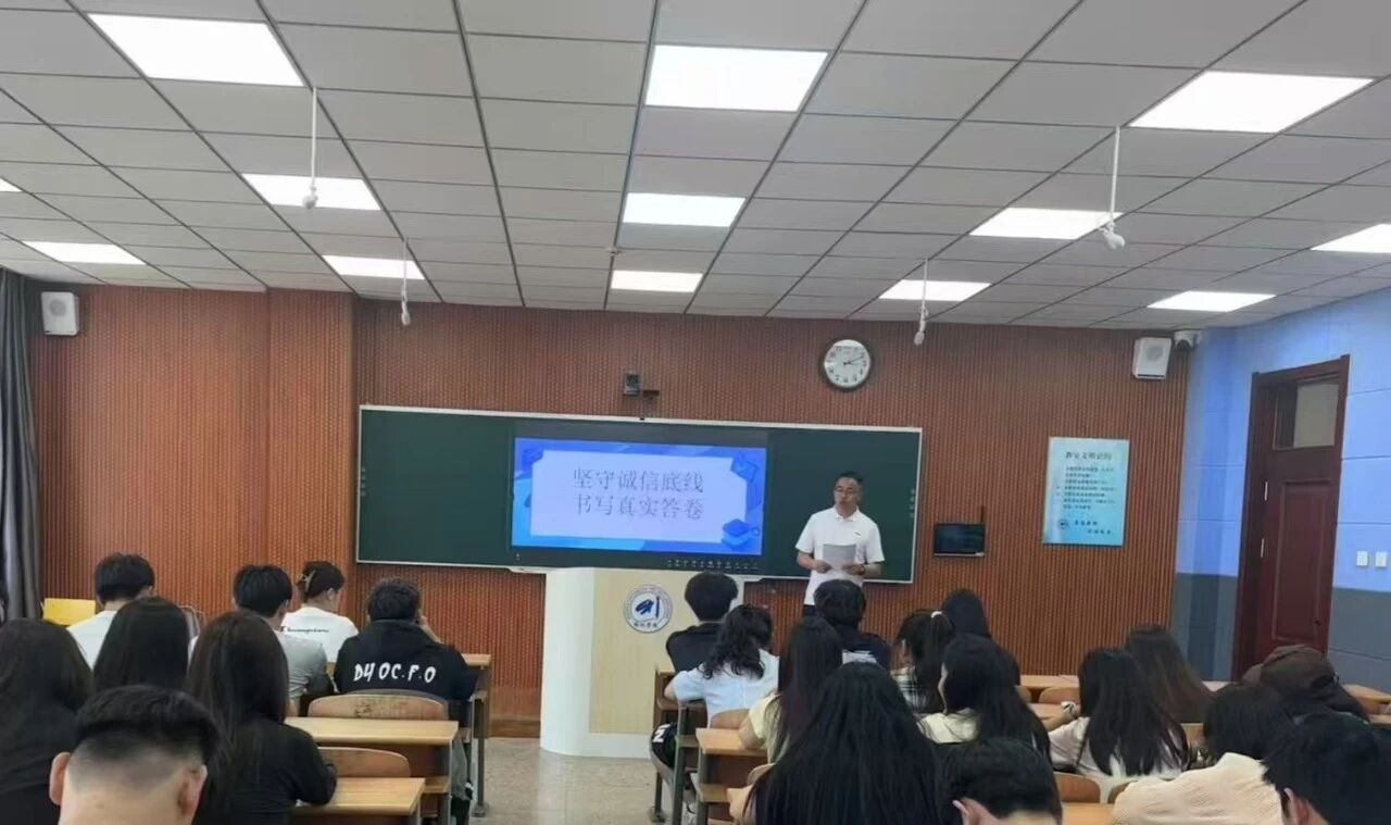 于老师结合学校规章制度和警示案例,重点剖析了考试舞弊的严重危害性,指出其对学生个人诚信记录、学业前途乃至集体荣誉的伤害。他特别强调:“诚信是立身之本,所有同学都应该坚守诚信底线,任何形式的作弊行为,都是对自身人格的严重贬损和对公平原则的践踏。”参会同学认真聆听,深受警醒。