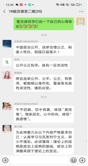ac米兰官网中文网站各班级在微信、钉钉等多个平台开展本次团日活动。同学们围绕两会相关热点展开深刻讨论,并在线上观看了“两会”视频,深刻体会了“两会”精神、“四进四信”重要讲话精神和社会主义核心价值观,对国家发展现状和未来发展规划也有所了解。本次主题团日活动聚焦两会热点,学习两会精神,作为当代大学生的我们更要努力提高自身思想政治觉悟和科学文化水平,增强使命意识和责任意识,为实现中华民族伟大复兴的中国梦贡献青年力量。