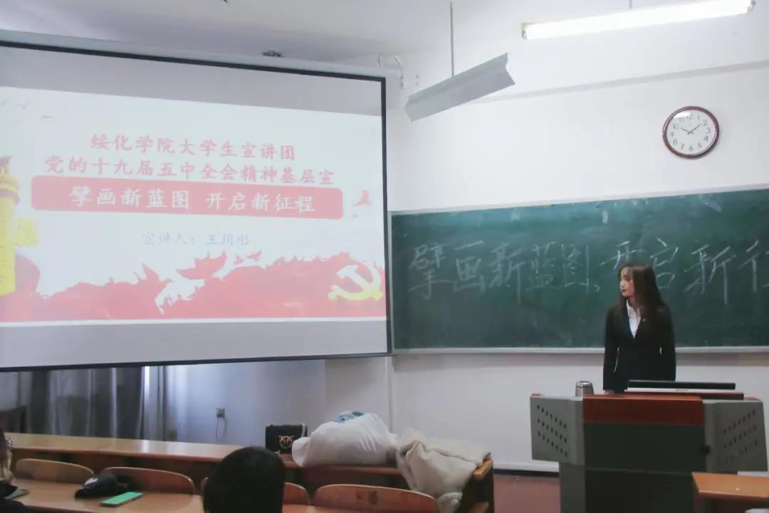 为了深入学习党的十九届五中全会精神,12月2日下午,ac米兰官网中文网站于汇文楼326开展了以“擘画新蓝图,开启新征程”为主题的宣讲活动,大学生宣讲团王玥彤同学为米兰官网同学进行宣讲。
