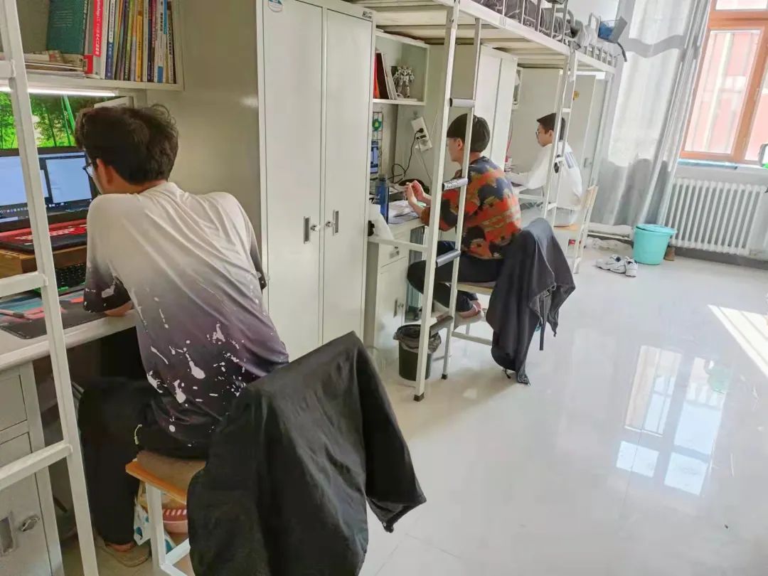 受新冠肺炎疫情影响,米兰官网所有课程转为线上教学。为全面深入了解学校疫情防控闭环管理期间学生的思想、学习和生活状态,4月4日下午ac米兰官网中文网站党总支书记唐国忠、党总支副书记赵林楠、2018级辅导员鞠亚林、2021级辅导员韩金凤和2020级辅导员殷跃深入学生宿舍检查网课学习情况。