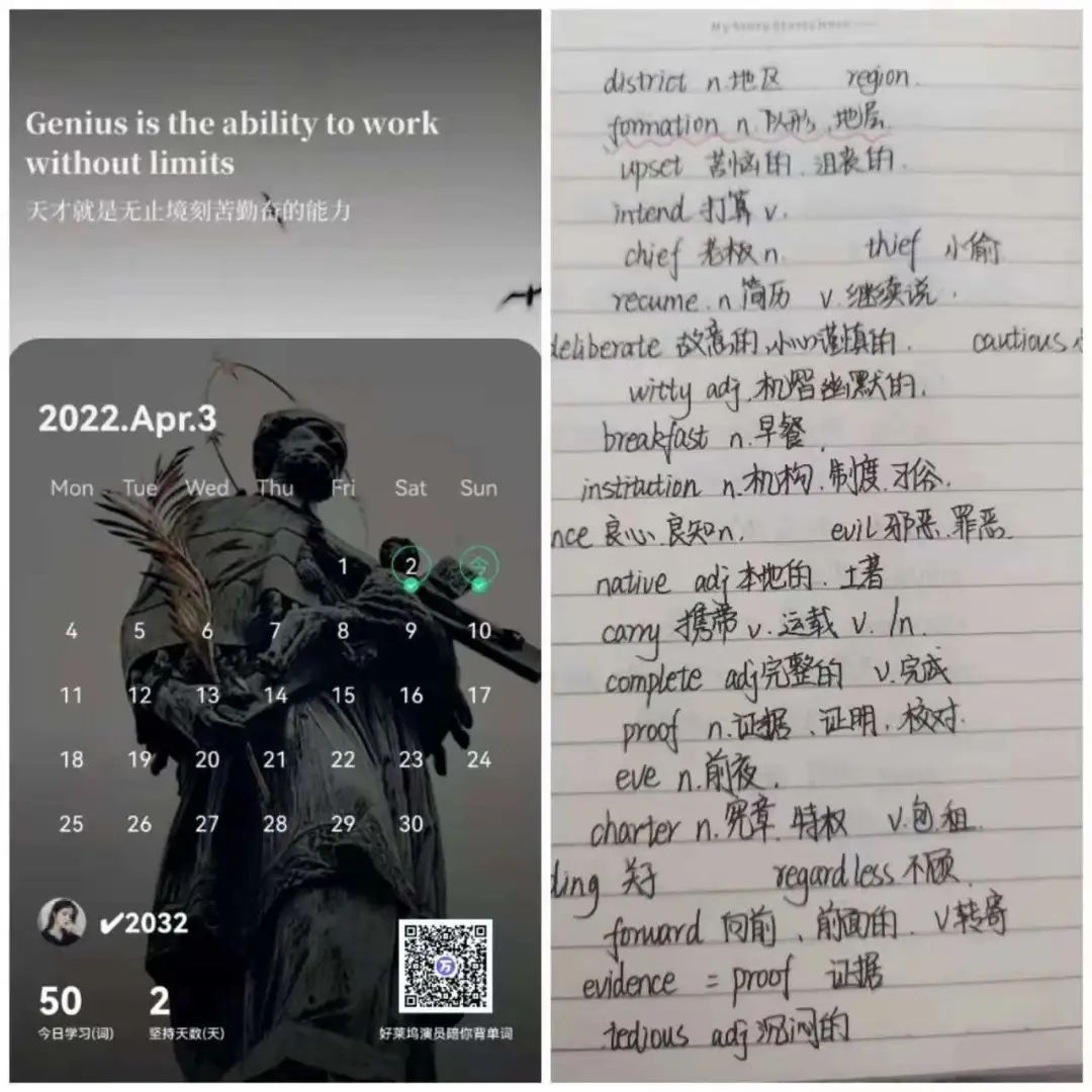 为培养学生的自律意识,激发学生学习的主动性,ac米兰官网中文网站特开展了以“凝聚青春正能量,学习打卡‘战’疫情”为主题的21天学习打卡活动,米兰官网学生充分利用线上教学的课余时间积极参加。
