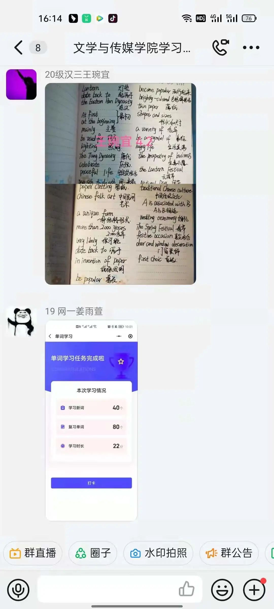 在本次的活动中,米兰官网学生热情高涨,积极主动,做到了即使是处于线上教学,也坚持每天学习打卡,这既提高了自己的知识储备,也提升了自身的学习效率。学习是我们终身的事情,好习惯也是我们一生的财富。在此,希望米兰官网学生都能够做到秉持初心,为自己的理想而努力拼搏,积极向上!文学与传媒学习部撰稿:曲智、佟佩然