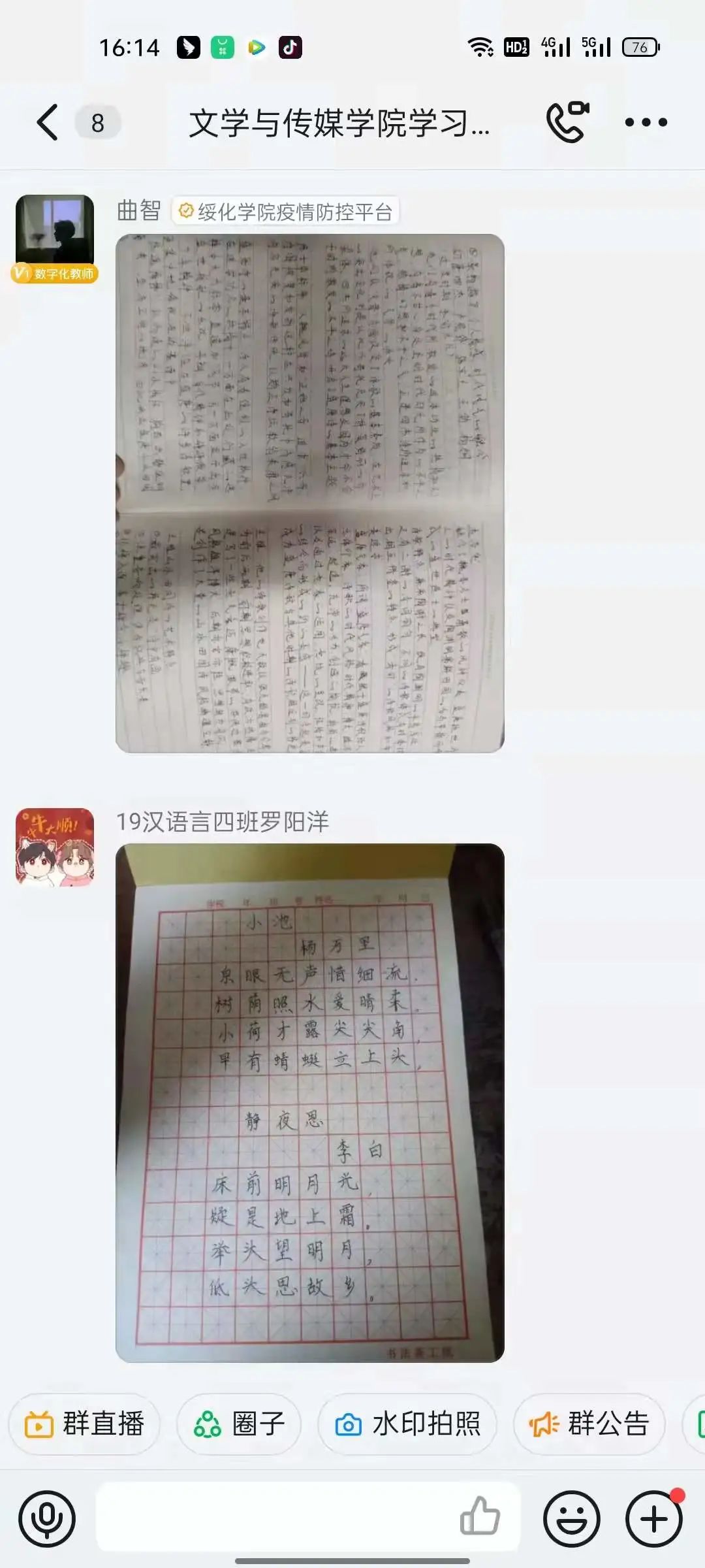 书法打卡可谓是师范生中的“热门”,米兰官网汉语言文学专业的学生牢牢把握这次机会,练习三笔字,看着他们赏心悦目的文字,仿佛看到了米兰官网师范生身上独有的责任感和使命感。坚持书法打卡不仅能提高自己的专业能力,还能反映出学生们对字体的重视和对自己的严格要求,在他们的书法打卡上,每一篇文字都做到了尽善尽美,让人感到心旷神怡。