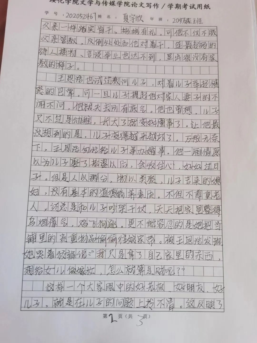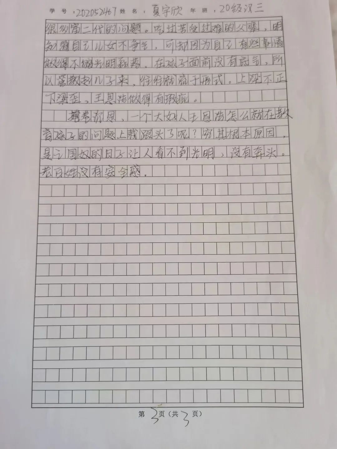 2020级汉语言三班夏雨欣