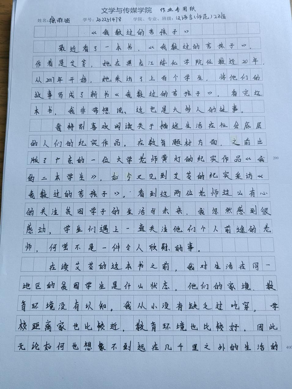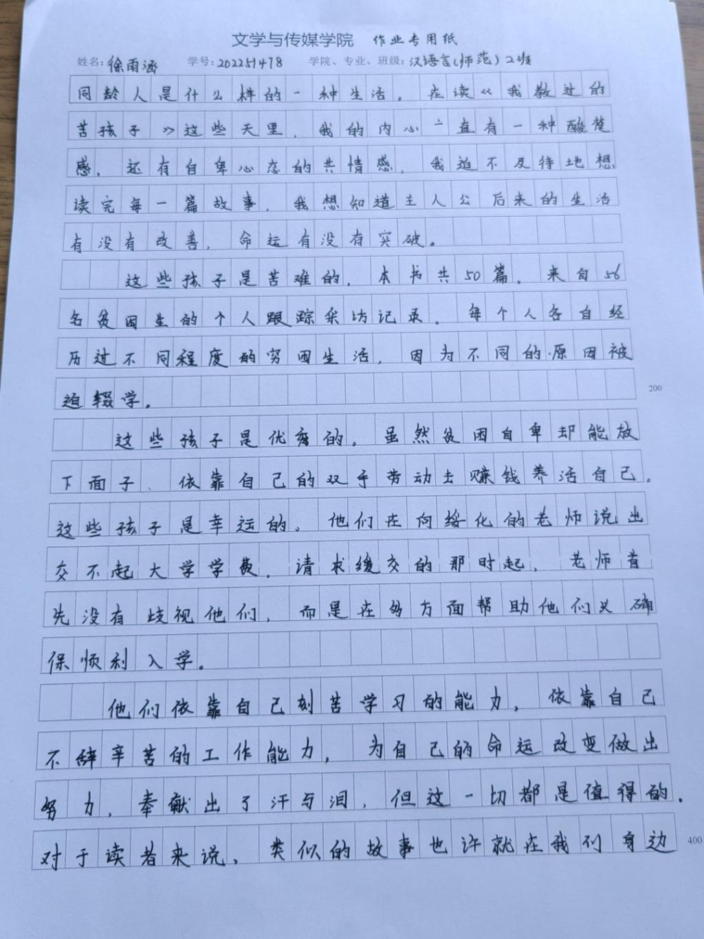 2022级汉语言二班徐雨涵
