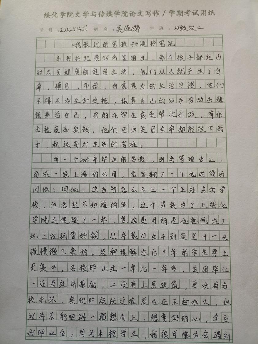 2022级汉语言二班吴晓婷
