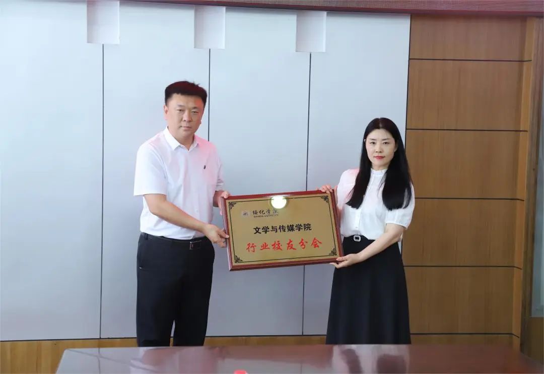 刘峰、马国齐分别为ac米兰官网中文网站行业校友分会授会旗、会牌。