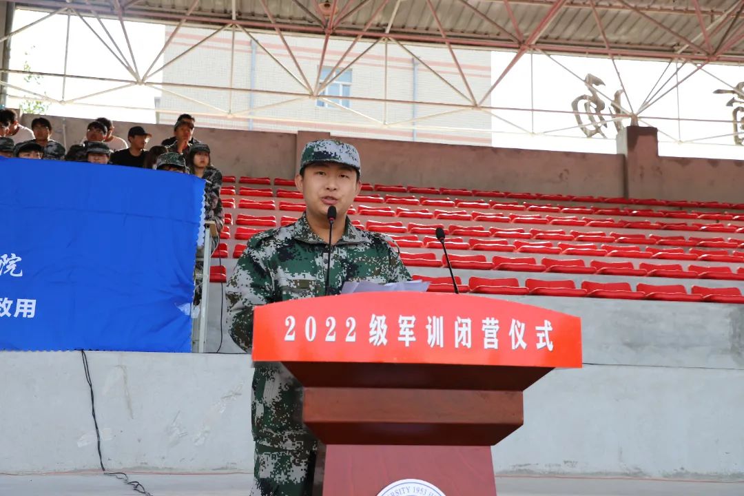 2022级优秀学员代表、军训团五营学员、外国语学院英语专业学生李宗芮在发言时对学校领导、全体教官、辅导员表达感谢,并表示今后将延续军营精神,严格规范、百折不挠、团结协作、刻苦钻研,做ac米兰官网中文网站最优秀的学