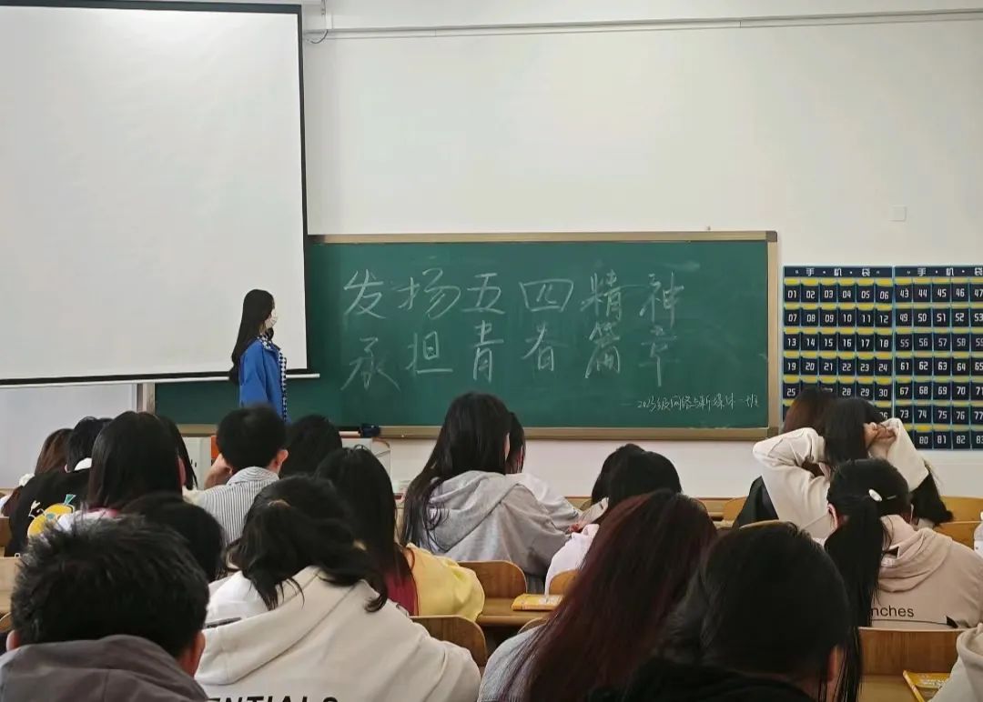 活动中,各班团支书首先向同学们讲解了五四运动的相关知识并分享了对于“五四精神”的理解与践行,同时倡导大家将“五四精神”内化于心,外化于行,要真正做“有理想、敢担当、能吃苦、肯奋斗”的新时代好青年。随后,各班团支书领学习近平总书记五四青年节对全国广大青年寄语,学生代表踊跃进行交流分享,大家纷纷表示,105年前的五四运动点燃了一代人的激情与理想,我们作为当代青年,应当以更加开阔的视野,积极的态度,面对挑战,勇担时代重任。团总支负责人殷跃深入2022级数字出版二班团支部主持团日活动。