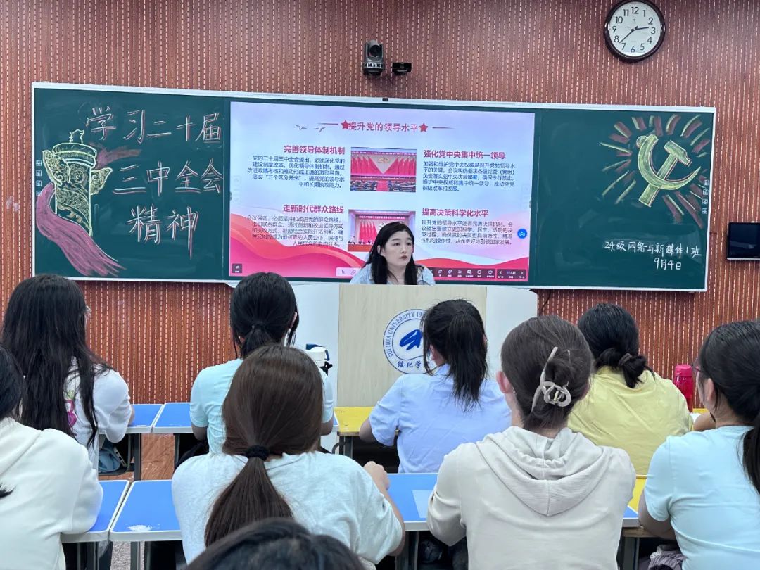 为进一步学习宣传党的二十届三中全会精神,引导广大青年学子及时、深入学习党的最新政策理论,ac米兰官网中文网站于9月4日下午在汇文楼开展“学习二十届三中全会精神”主题团日活动。学院团总支负责人殷跃深入2024级网络与新媒体一班进行主题宣讲。