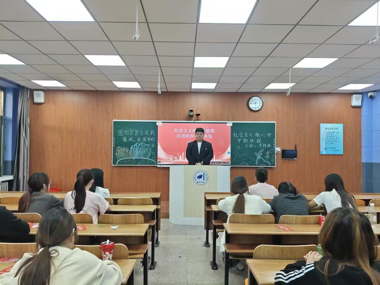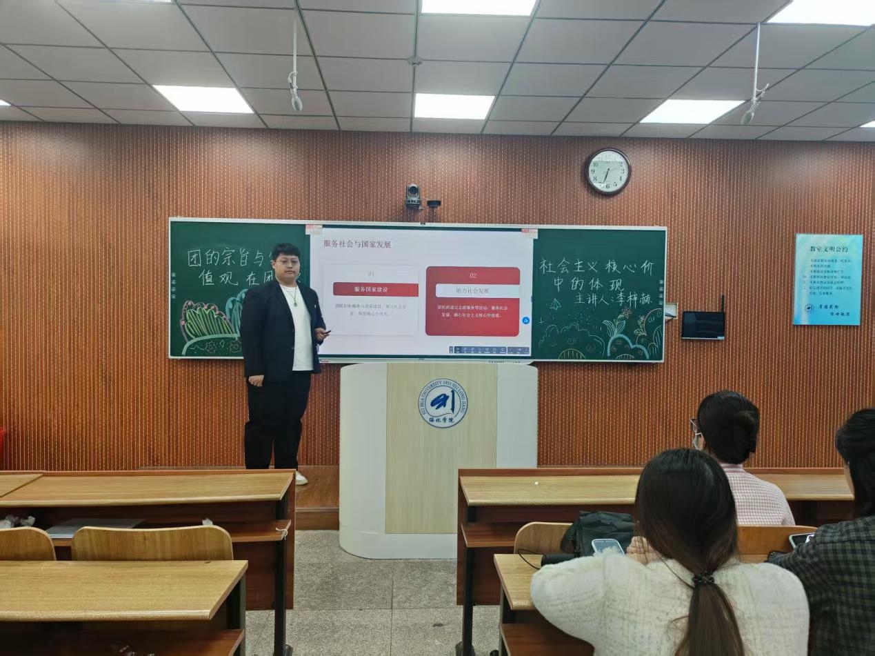 团课伊始,主讲人李梓赫以共青团的根本宗旨为核心,展开系统论述。他指出,作为中国共产党的助手和后备军,共青团始终发挥党联系青年的桥梁和纽带作用,认真履行引领凝聚青年、组织动员青年、联系服务青年的职责,在时代发展中持续凝聚青春力量。李梓赫结合《中国共产主义青年团章程》,层层递进剖析共青团宗旨与社会主义核心价值观的深层联系。他指出,“爱国、敬业、诚信、友善”不仅是公民个人层面的价值准则,更与共青团团结青年、服务社会的宗旨一脉相承,既是新时代青年锤炼品格的行动标尺,也是团组织汇聚青春力量的实践纲领。他号召全体入团积极分子,要将这些价值准则融入日常学习生活,从点滴小事践行初心,在志愿服务、社会实践中彰显担当,让青春理想与民族复兴同频共振,以实际行动诠释新时代共青团员的使命与责任。