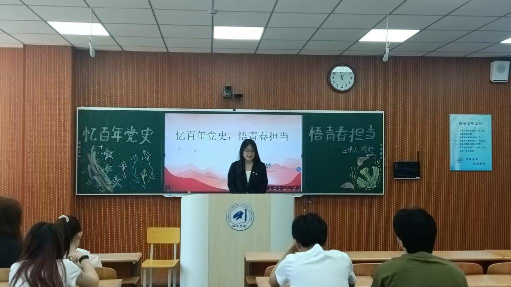 杨婷结合《中国共产党简史》核心内容,系统阐释新时代青年的使命与要求:坚定理想信念:传承党的红色基因,始终听党话、跟党走,筑牢思想根基。锤炼过硬本领:在专业学习中精益求精,在社会实践中增长才干,夯实服务社会的能力。勇于创新奉献:学习党史中青年先驱的奋斗精神,主动投身志愿服务、科技创新等实践。强化责任意识:以党史为镜,明确时代使命,在服务集体与社会中彰显青春价值。