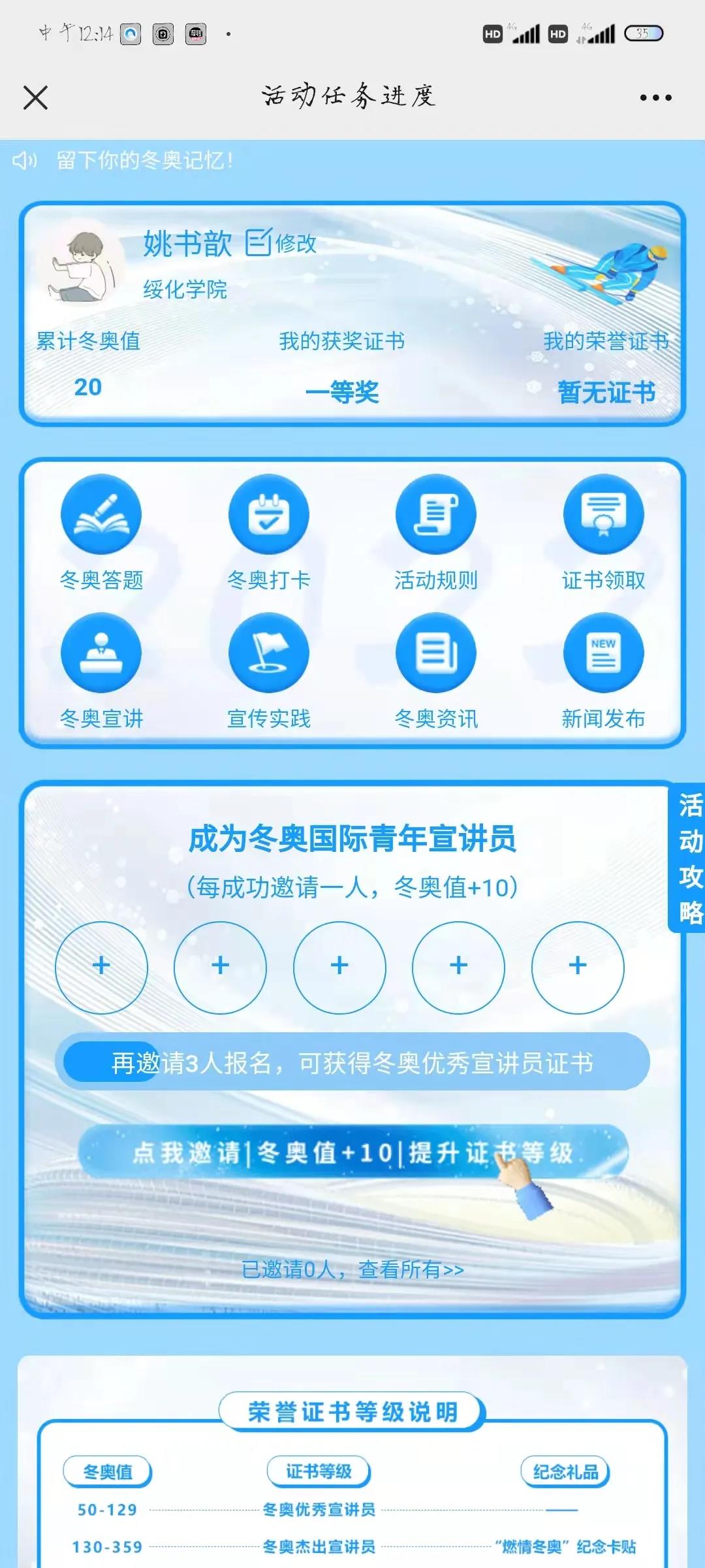 通过参与“魅力冬奥”冬奥知识讲解员活动,让我体会到了普通人也会发光发热报效国家,只要身体力行的去做,不怕艰苦,不怕枯燥,我们就能对社会做出贡献。对于冬奥会,大家应该都是热情并充满期待的。而我也一样,对于冬奥会充满了期待。我要进一步将冬奥会的知识分享给身边的人,我们也要积极参与冰雪运动,让奥林匹克精神点亮我们的梦想、让冬季运动融入我们普通群众中。