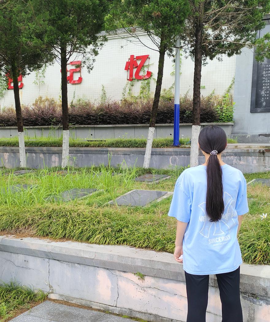到达烈士陵园后,映入她眼帘的是一座座庄严肃穆的烈士纪念碑。它们静静地矗立在那里,仿佛在诉说着过去的峥嵘岁月。随后她又来到了烈士英名录前,名录上密密麻麻的写着一位位烈士的名字,陈文敏同学驻足在名录前怀着沉重的心情默默地向战士们表达敬意,这些名字时刻提醒着我们和平年代的来之不易。最后她又去往了爱国主义教育红色基地,了解紫阳县人民抗日救国的英雄事迹。