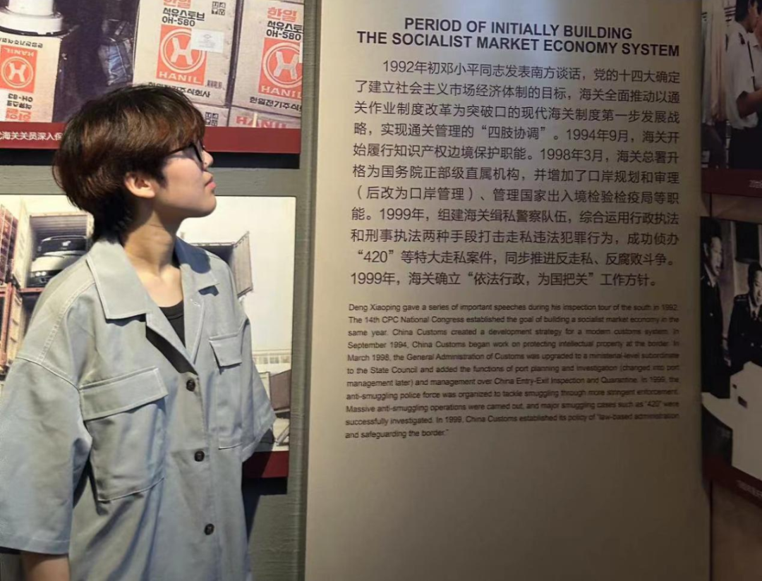 7月13日,田佳馨同学参观了中国海关博物馆,感觉就像是在时光中穿梭,与历史进行了亲密接触,体会到了文化传承的实际影响和价值。习近平文化思想就像一盏灯塔,指引我们探索文化根源和发展的方向。