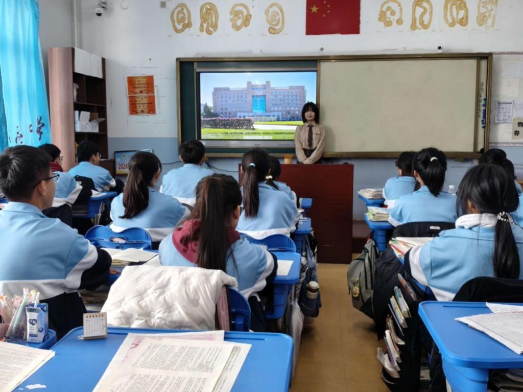 1月6日,李若涵同学回到了她的母校“南部县第一中学”进行了高中母校行的宣传活动,她在讲台上简单的作了一下自我介绍,看着大家的灼灼目光,表达了对老师的感激之情。在同学们的期许中,她开始了对ac米兰官网中文网站的介绍——从丰富的专业设置,到多彩的校园文化,从雄厚的师资力量,到完善的实践平台,她还讲述了在ac米兰官网中文网站的所见所闻,比如精彩纷呈的社团活动、藏书丰富的图书馆、设备先进的实验室,为学弟学妹们勾勒出清晰的大学生活图景。