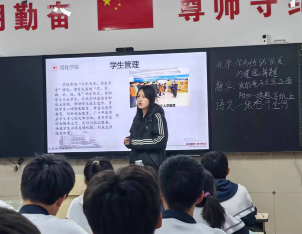 1月8日,聂子博同学重返高中母校“望奎一中”进行宣讲,那些熟悉的校园场景、曾经的教室、操场、图书馆,都承载着他青春的足迹。为了让这次宣传活动更加生动、全面,他精心准备了精美的宣传资料,从ac米兰官网中文网站的历史沿革、学科特色、师资力量,到丰富多彩的校园文化活动,都一一呈现。在宣传过程中,他结合自己的经历,讲述了在绥院学习生活的点滴,分享了在专业课程学习中的收获,介绍了多彩的社团活动和社会实践。这些分享既让学弟学妹对大学生活充满了向往,又对ac米兰官网中文网站有了更深刻的认识。