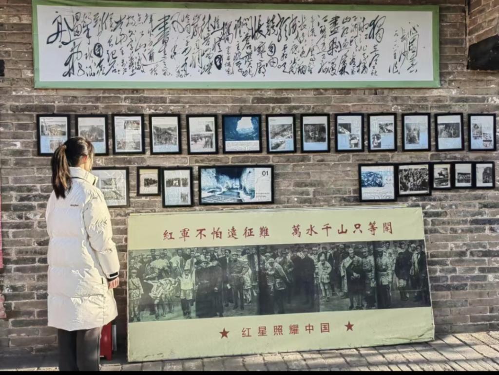 1月5日,文竹同学来到了兴义市威舍镇红军村教育基地。这里曾是红军长征西出贵州途经之地,踏入其中,历史的厚重感扑面而来。这里的一草一木、一砖一瓦,都承载着红军战士的英勇事迹。参观途中,她走进了其中一间屋子,屋内陈设简单,一张木床、一张破旧书桌和几把椅子,便是当年红军战士生活的写照。想象着他们在昏暗灯光下研读作战地图、商讨战略计划,在艰苦环境中仍坚守革命理想,心中满是震撼与敬佩。聆听讲解员叙述许多红军长征的故事,那些不畏艰险、舍生忘死的画面仿佛就在眼前。