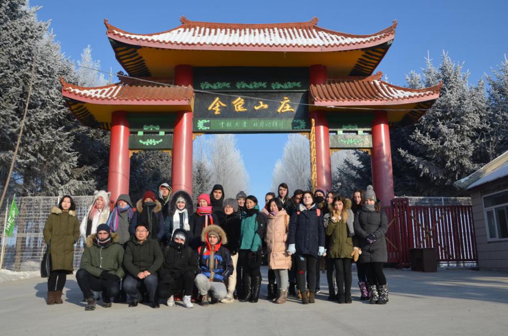 2017年12月23日,为增进留学生们对东北传统民俗与文化的感知,体验独特的关东冰雪文化,ac米兰官网中文网站副院长由婧涵和班吴春生、张佐娟老师,带领同学们来到了绥化具有浓郁神话传说色彩的金龟山庄进行为期一天的文化考察活动。