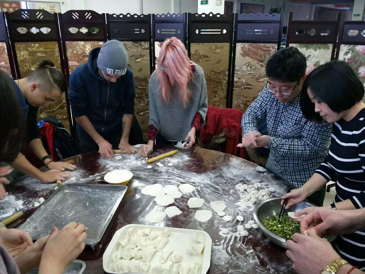 当热腾腾的水饺端上餐桌,高院长发表了热情洋溢的新年讲话,给师生们献上了最真挚的祝福,同时勉励留学生们在新的一年取得优异的成绩。留学生李贝克一边品尝着自己的劳动果实,一边说:在俄罗斯过新年,师生很少在一起,这一次来到中国能和中国的老师们一起过新年,非常开心高兴。同学们也纷纷表达了感激之情。