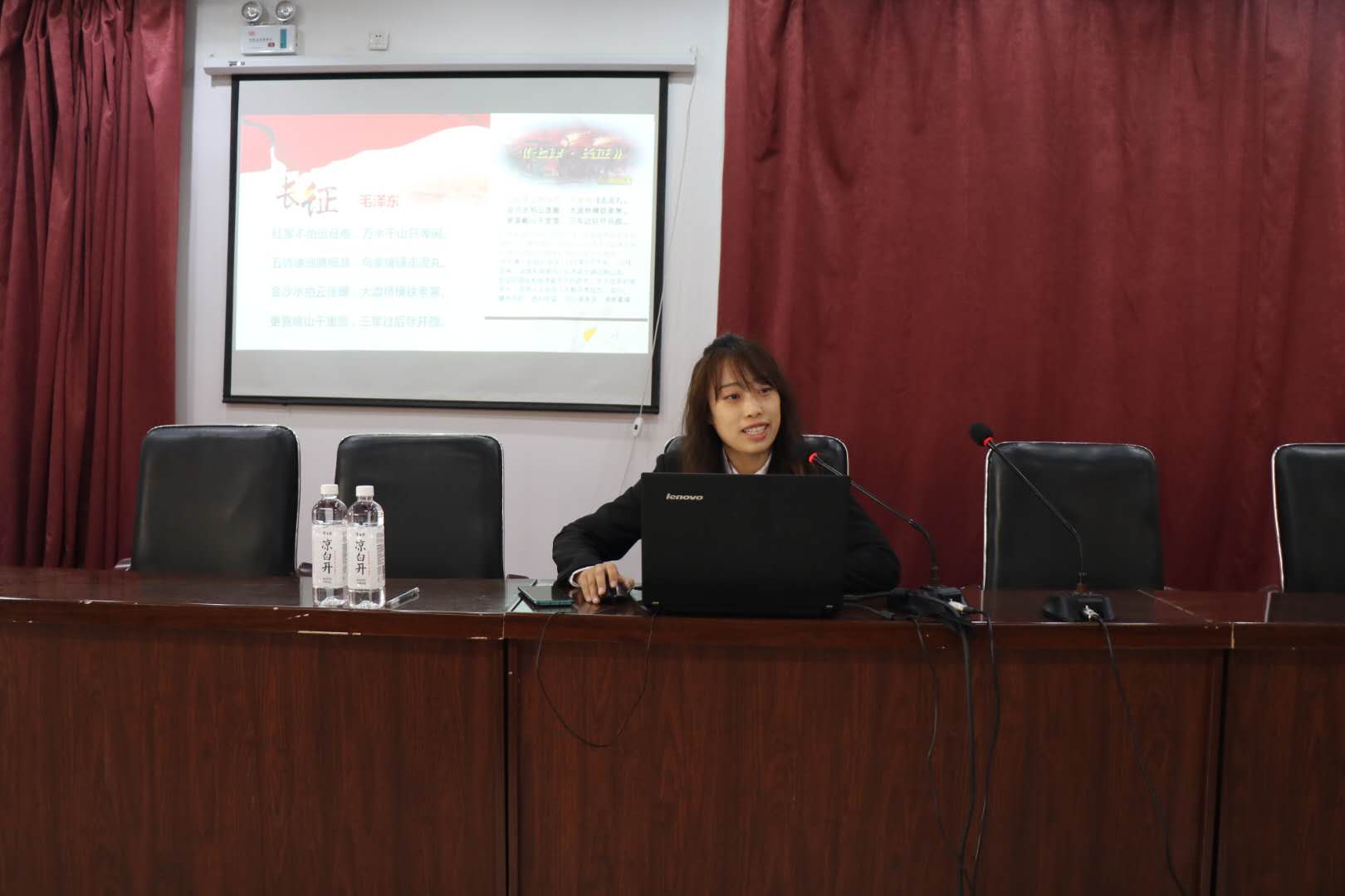 本次宣讲在全场师生一同高声背诵的毛泽东诗词《七律·长征》中开始,韩金凤老师从红军长征发生的历史背景出发,以时间线索为脉络,向在场师生细致讲述了在党领导下的两万五千里长征壮举。在宣讲中,韩金凤重点介绍了红军长征途中发生的几个经典战役,当讲到雪山草地、铁索寒崖、枪林弹雨时,全场寂静,每一名师生的眼神中都闪烁着对先烈的钦佩和敬意。