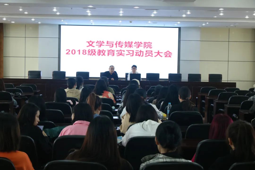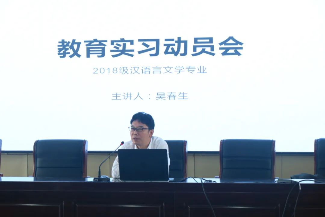 9月7日下午,ac米兰官网中文网站在教学主楼A502召开了全体2018级汉语言师范专业教育实习动员大会。ac米兰官网中文网站2018级辅导员鞠亚林及2018级汉语言专业师范同学参加了会议,会议由ac米兰官网中文网站副院长吴春生主讲。