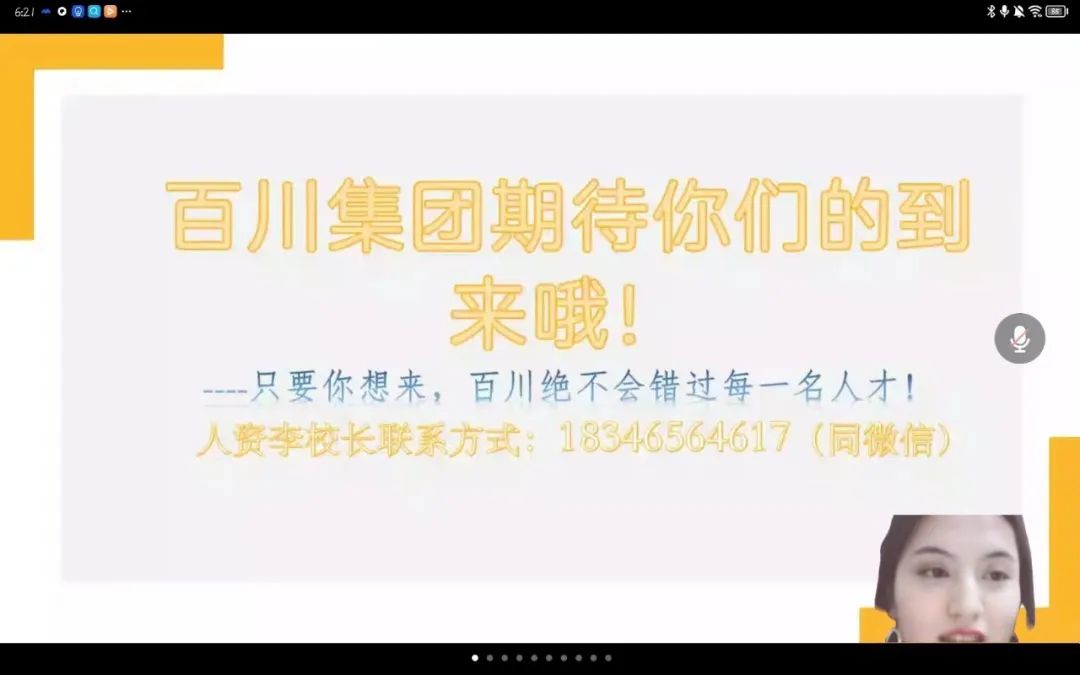 会议伊始,李慧老师详细介绍了百川教育的企业文化、教育宗旨、主营业务、办学规模、管理机制、教学设备、住宿环境、学校培养体系等方面。为毕业生展现了百川教育优良的教学体系和融洽的群体环境。