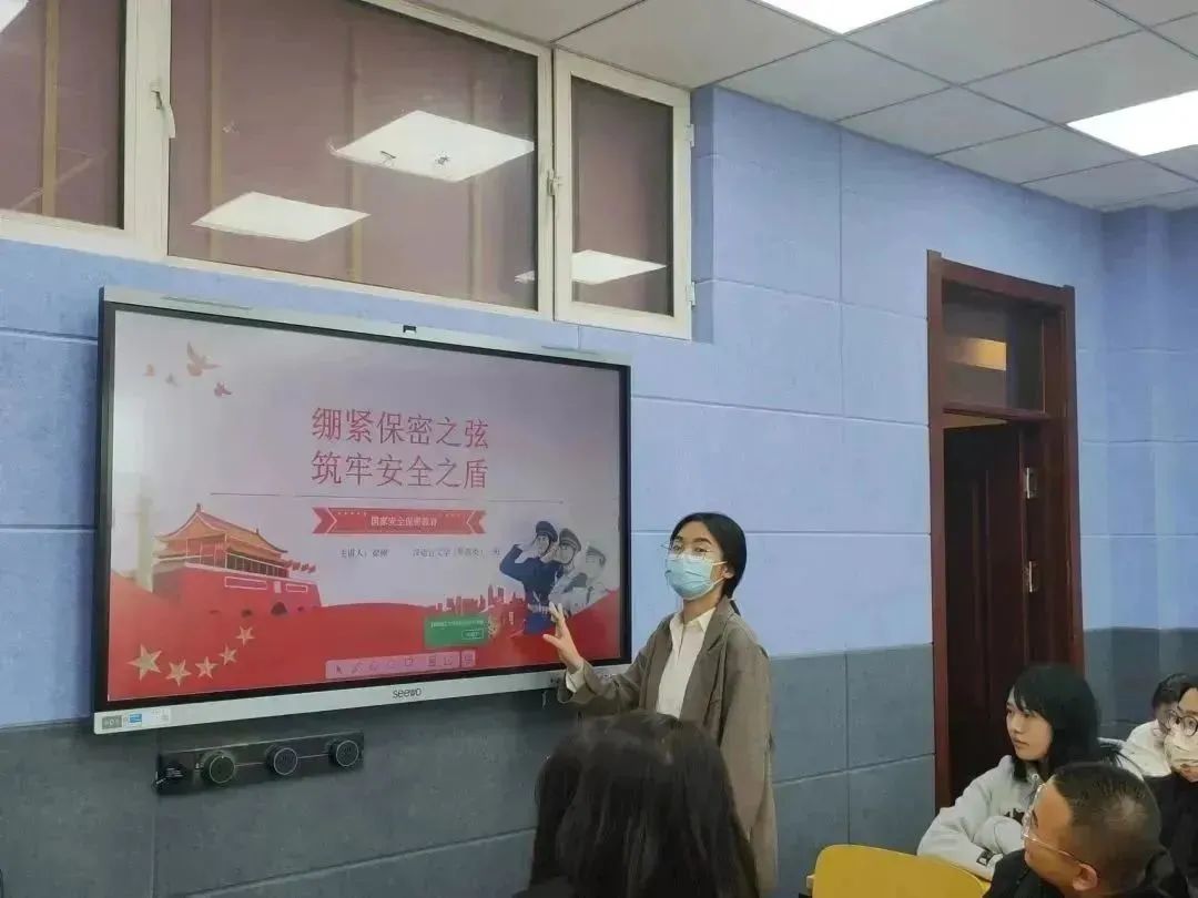 活动分为三个环节:首先,各团支部组织同学们观看《提高警惕、筑牢防线》《莫让微信成“危信”》等保密警示教育片,增强同学们做好新时代保密工作的责任感与使命感。随后,各团支部开展保密知识竞赛活动,通过问答、抢答等方式对同学们掌握的保密知识进行测试,提高同学们的安全保密意识。最后,组织大家在“黑龙江省干部教育网络学院”下载《保密法》解读专题课程,观看课程内容,进一步增强、提升同学们的保密意识和保密行为,自觉维护国家安全。
