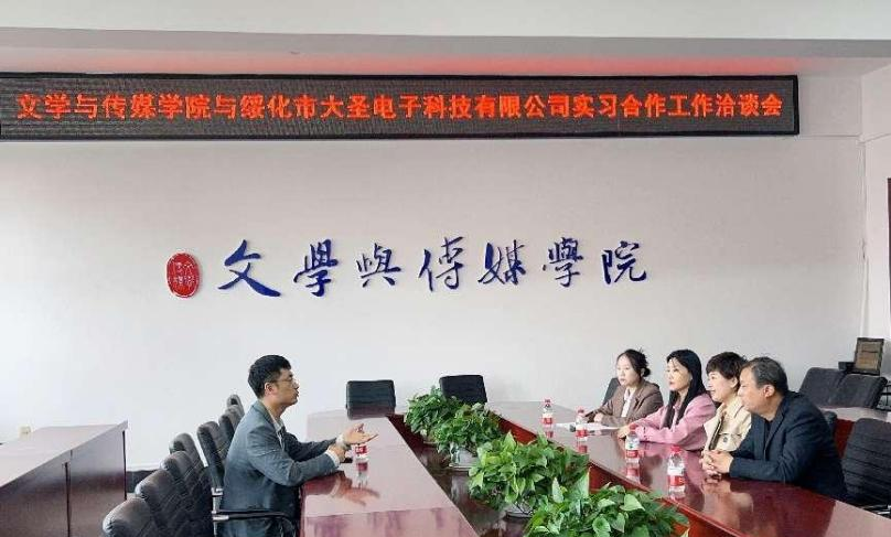 同日下午两点,绥化市大圣电子科技有限公司(饿了么)来米兰官网就实习合作内容举办工作洽谈会,与会人员有绥化市大圣电子科技有限公司(饿了么)总经理张明星、ac米兰官网中文网站由婧涵院长、王子鸣书记、汪淑双副院长、数字出版专业负责人柳鑫苗老师。